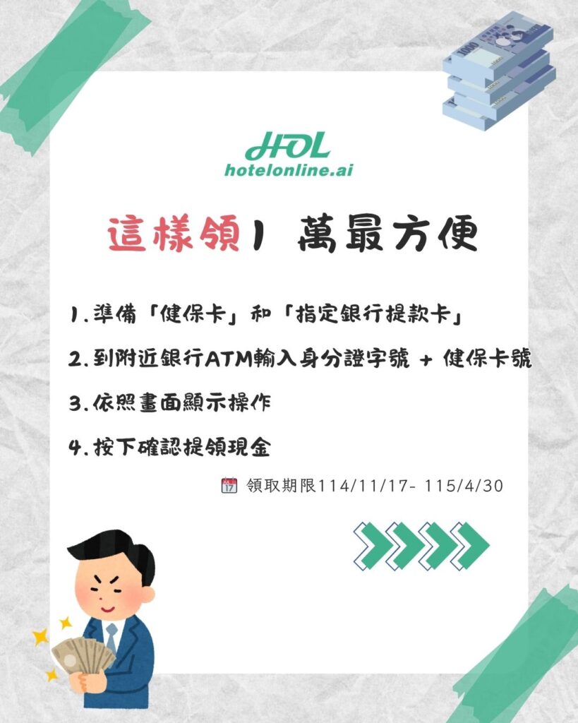 | ATM領現 | 11/17 起開放領取,至指定 16 家金融機構 ATM 領取。 | 2026/4/30 |
