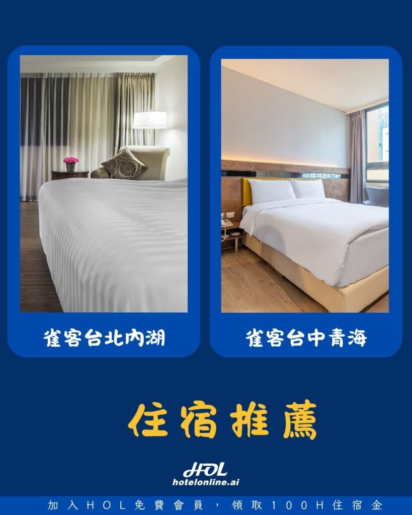 如果擔心住宿費用過高,可以使用HOL訂台灣飯店,享受台灣住宿優惠,入住全台熱門景點附近旅宿,從北到南玩透透也不傷荷包!